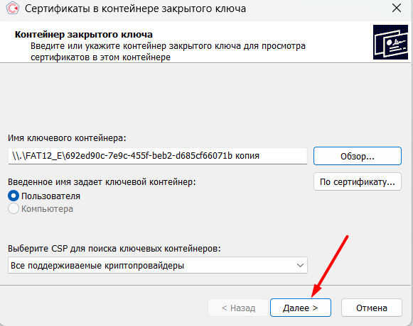 Не забываем после копирования установить сертификат через крипто про ( можно найти в пуск или в панель управления)
